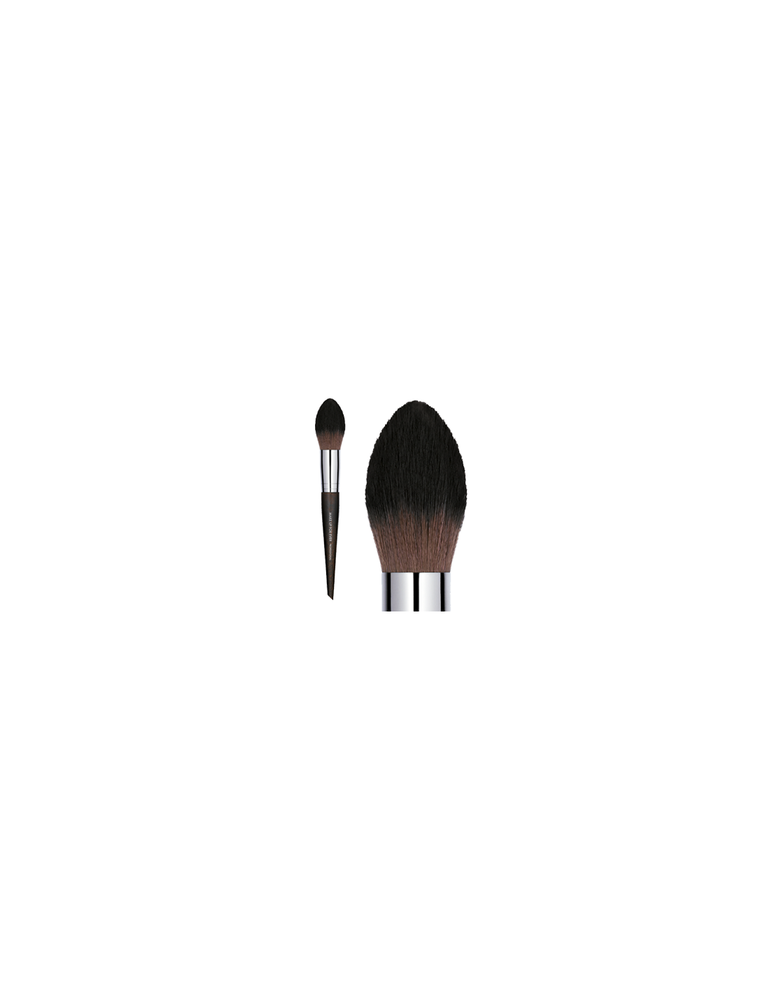 Brochas profesionales de pelo natural. Diseñadas para blush, polvo traslúcido, contouring... Brochas de base clara y puntas oscuras. Textura muy suave, pelo muy tupido. Con una forma sesgada o roma pensadas para la aplicación de polvos, Contouring, Blush, etc.