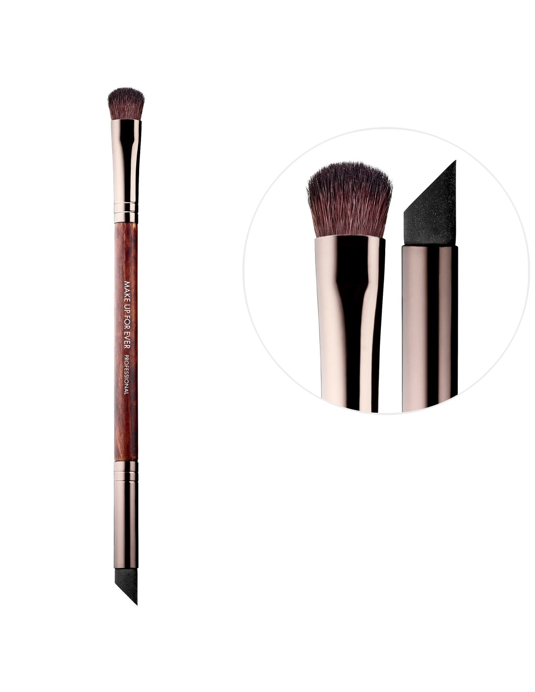 Pincel recto, plano y biselado. Aporta un trazo muy limpio. De la familia de los pinceles de eye liner.