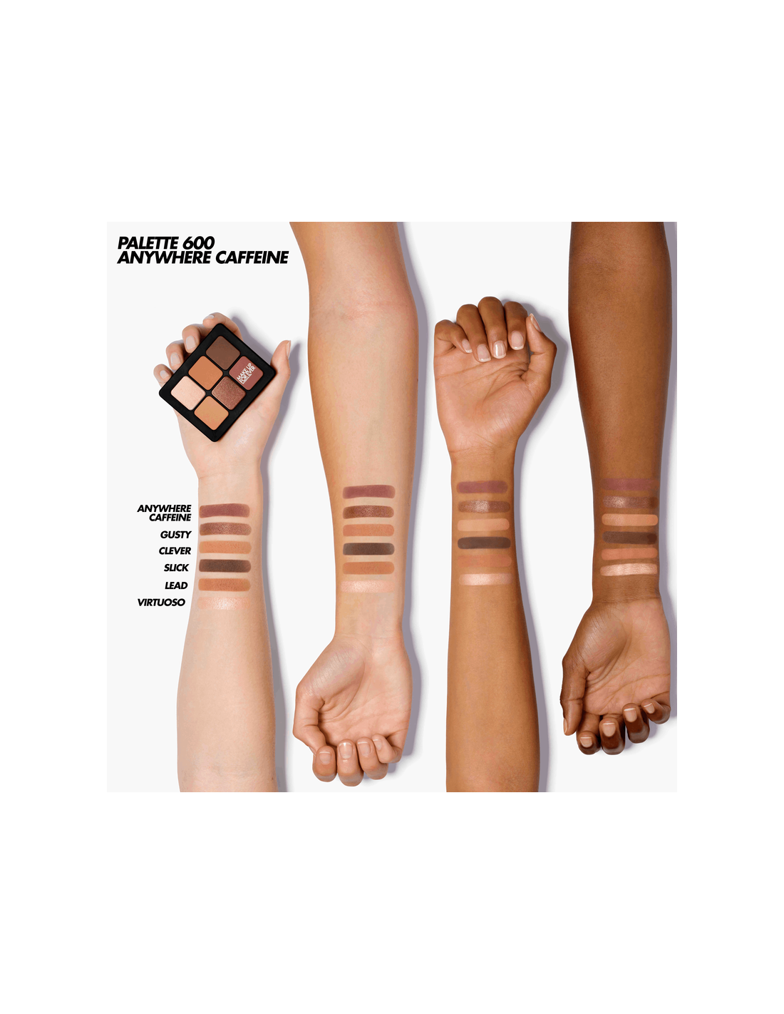 Wherever Walnut es la paleta perfecta para ojos azules, pero si buscas una paleta para maquillaje ahumado, entonces Whatever Black es para ti.
